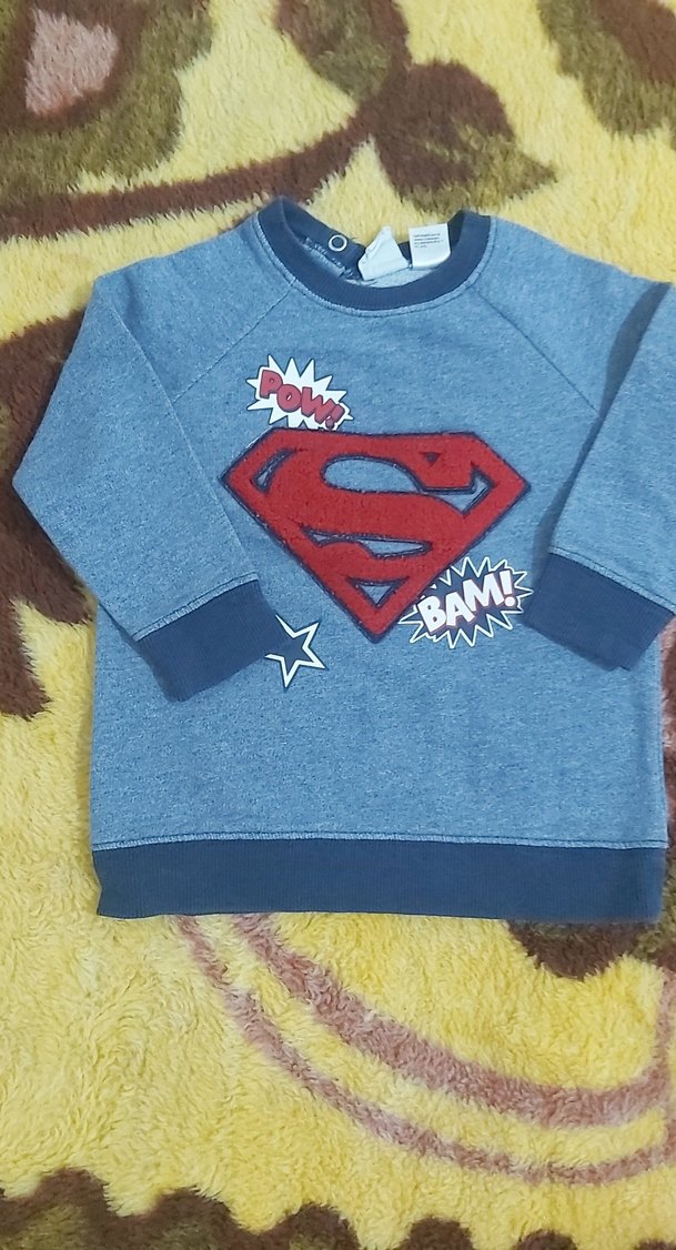 Uzun kollu, bisiklet yaka, renkli Süperman baskılı, yumuşak tüylü kumaştan örme detaylı erkek çocuk sweatshirtü. ♂️