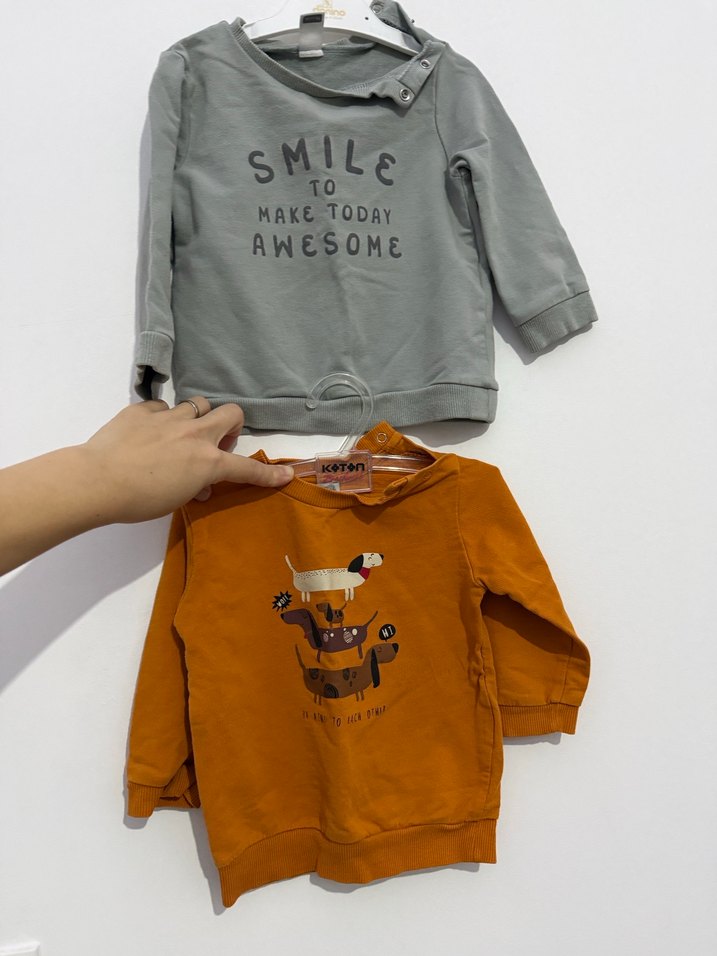 Erkek çocuklar için uzun kollu, yuvarlak yakalı ve bol kesim sweatshirt. Yumuşak ve sıcak kumaştan, gri renkte, yakası çıtçıtlı biri lcw 12-18 ay beden Digeri hello baby 1 yas hasarsiz temiz