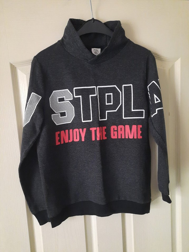 uzun kollu ve hakim yaka erkek çocuk sweatshirtü. Yumuşak, örme tüylü kumaştan, bol kesim. just play enjot the game baskılıdır.