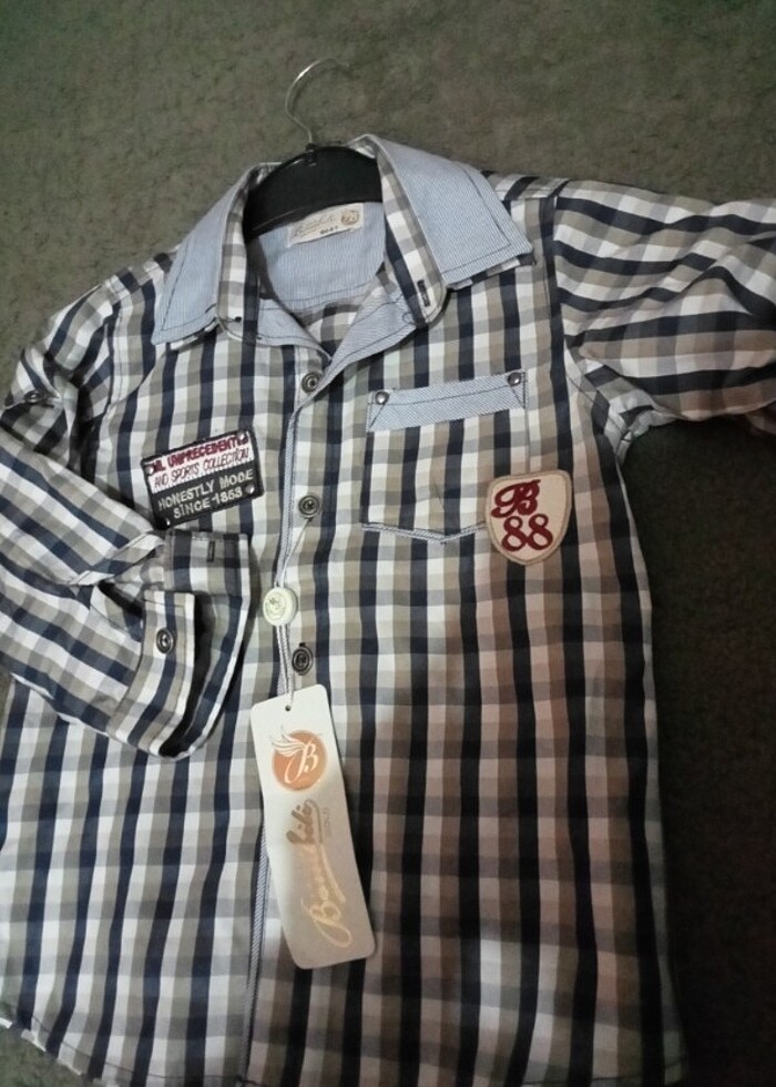 Pantalon ve gömlek etiketi üzerinde 4 yaş