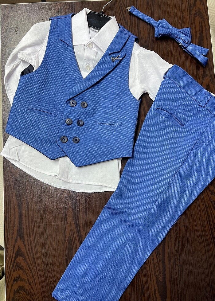 Şal yaka makas detaylı Yelek, gömlek, pantolon ve papyon ile gönderilmektedir. 2 yaş
