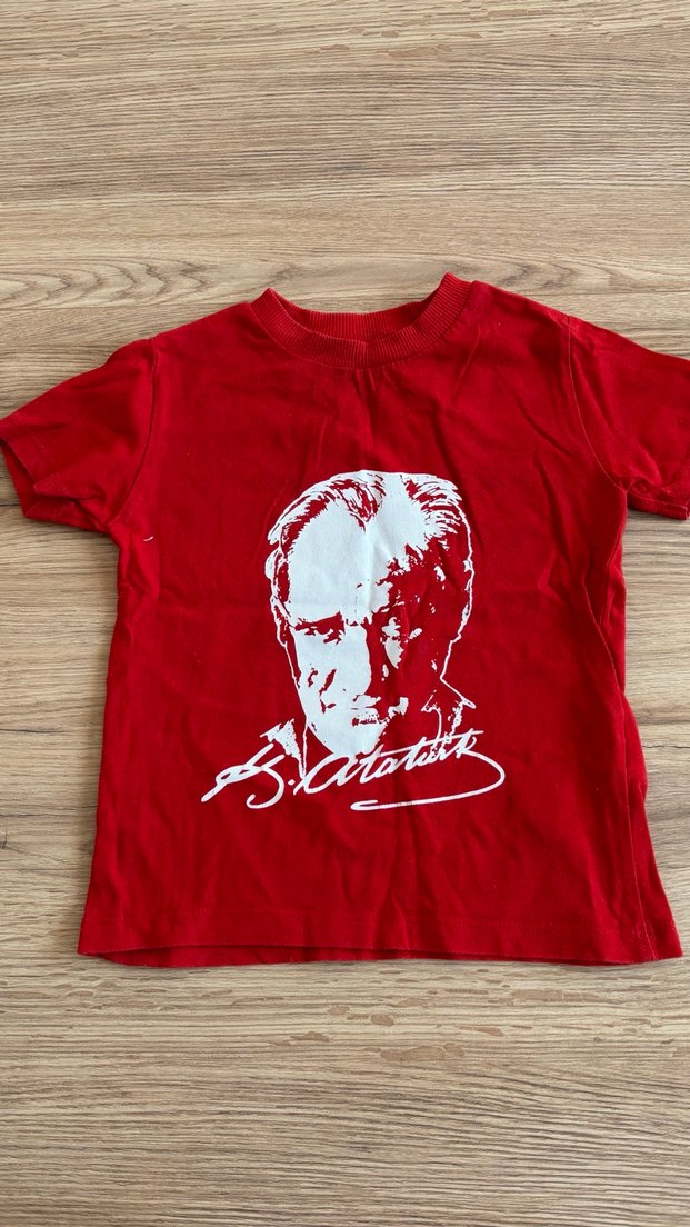 Kırmızı penye kısa kollu erkek çocuk tişört