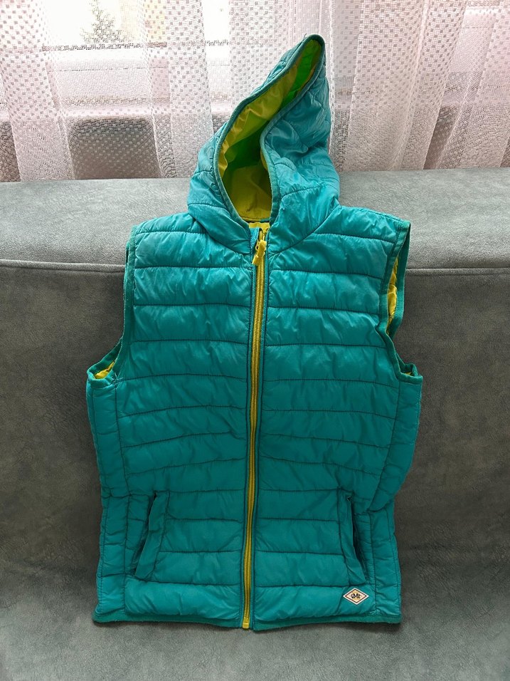erkek Çocuk Turkuaz Kapüşonlu Fermuarlı Yelek