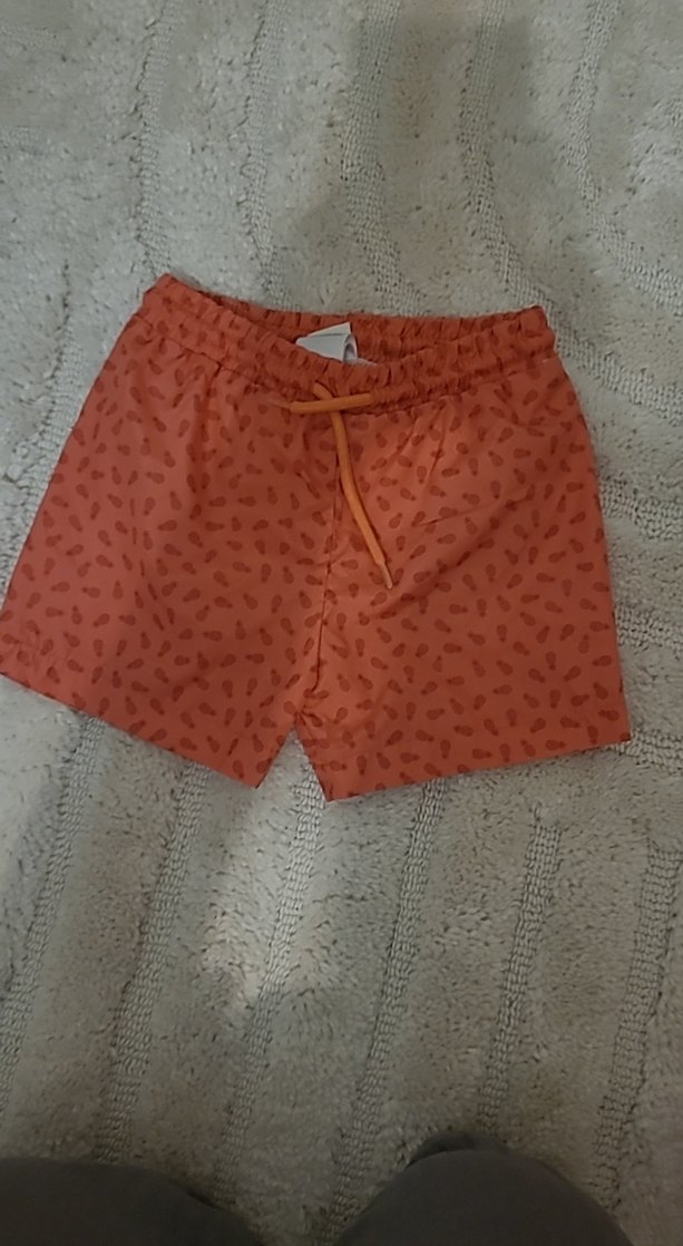Turuncu desenli erkek çocuk yüzme şortu, elastik beli ve bağcıklı. Rahat kesim ile yüzme için uygundur.