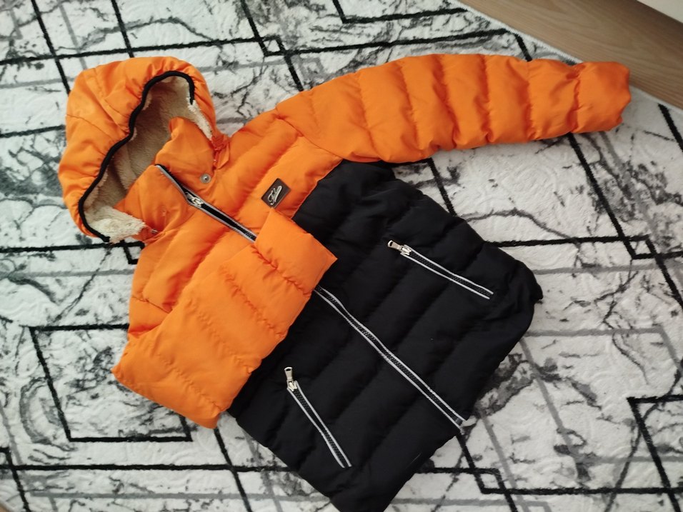 Erkek çocuklar için turuncu ve siyah renklerde, fermuarlı cepleri ve yüksek yakası olan, soft ve sıcak dokulu, fitted kesim mont. yakasında çıt çıtı yok sadece fotoda da gözüküyor çok çok yeni