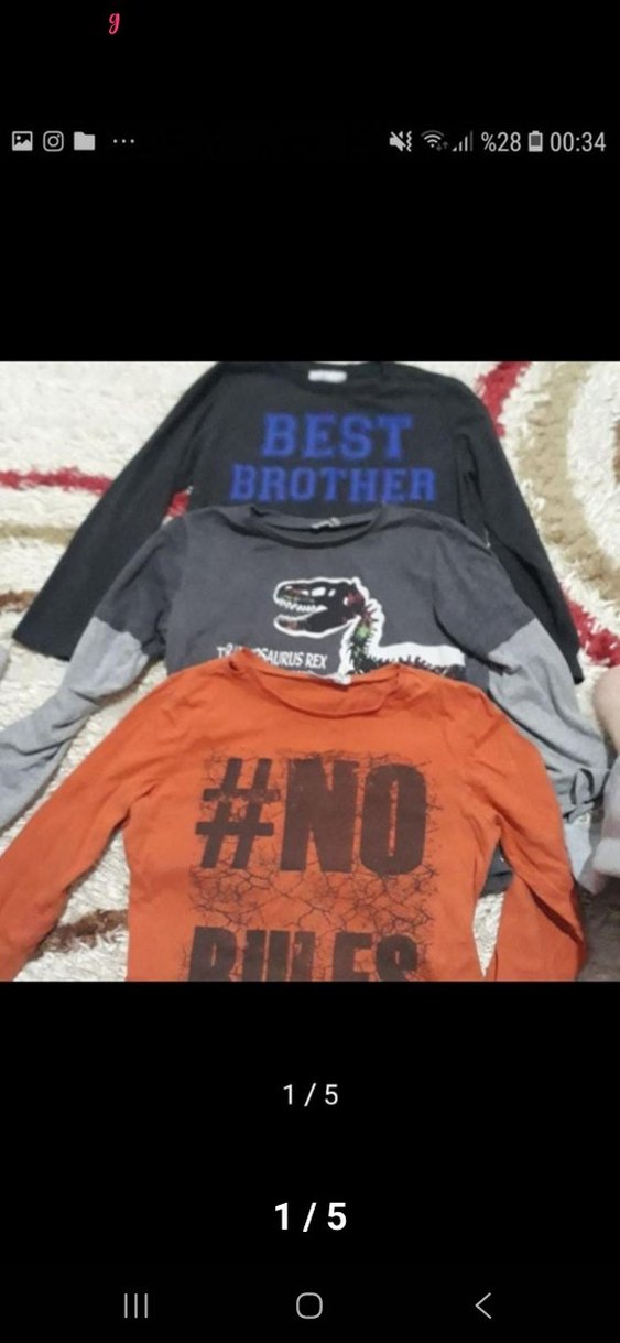 Erkek çocuklar için pamuklu, uzun kollu, baskılı ve kemerli kahverengi sweatshirt. Sokak stili ve rahatlığı bir arada sunar. 7_8 yaş biri #lcw diğeri #defacto dur.kisa kol ve uzun koldur.yesilde biraz pamuklanma mevcut.Fiyati da ona göre belirledim .Fakat baskıda soyulma ,çatlama yoktur.
