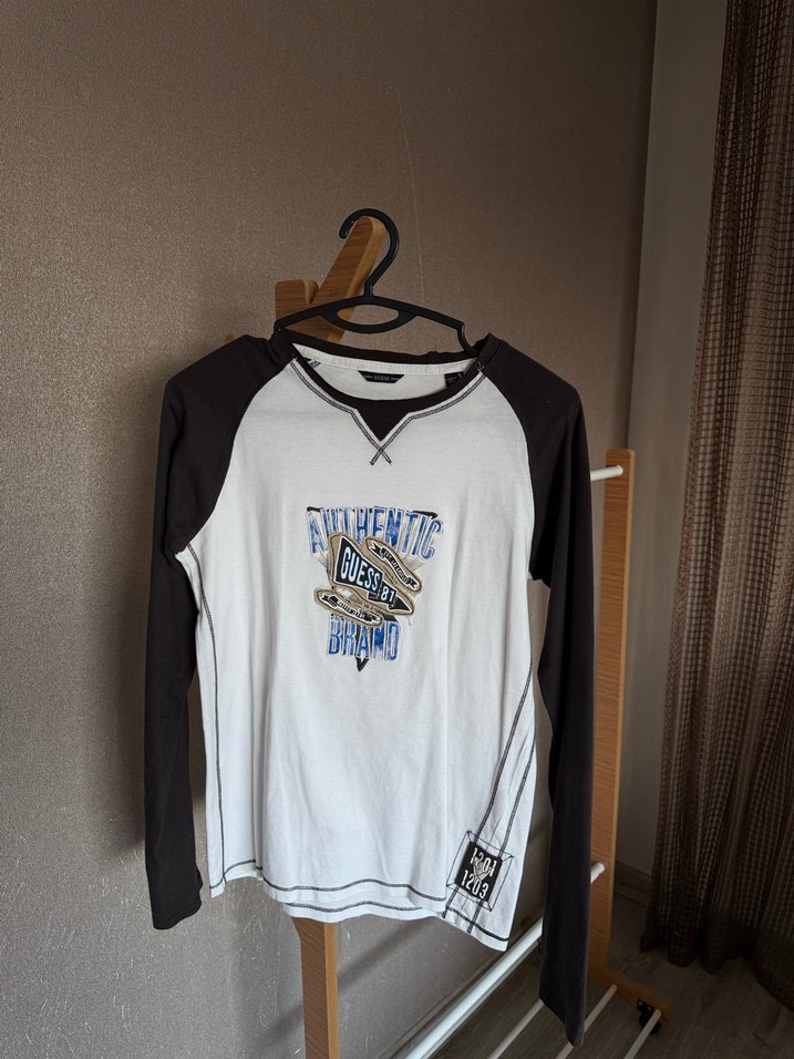 Erkek çocuk tişörtü, uzun kollu ve yuvarlak yaka. Pamuklu kumaştan, koyu renk kollu ve beyaz gövdeli. Baskılı ve kemerli detaylı.