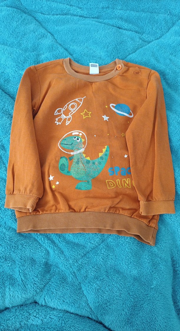 Erkek çocuk için uzun kollu, düğmeli ve bol kesim sweatshirt. Yumuşak ve sıcak kumaştan, renkli uzay temalı baskılarla süslenmiştir.