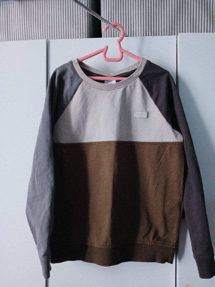 Erkek çocuklar için uzun kollu, bisiklet yaka ve bol kesim pamuklu sweatshirt. Gri ve kahverengi renklerin sade birleşimi, rahat bir sokak stili sunar.