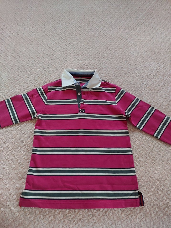 Canlı pembe renkte, uzun kollu ve düğmeli yakaya sahip erkek çocuk polo tişört, yumuşak sentetik kumaştan üretilmiştir. Trend sokak giyimi için uygundur.