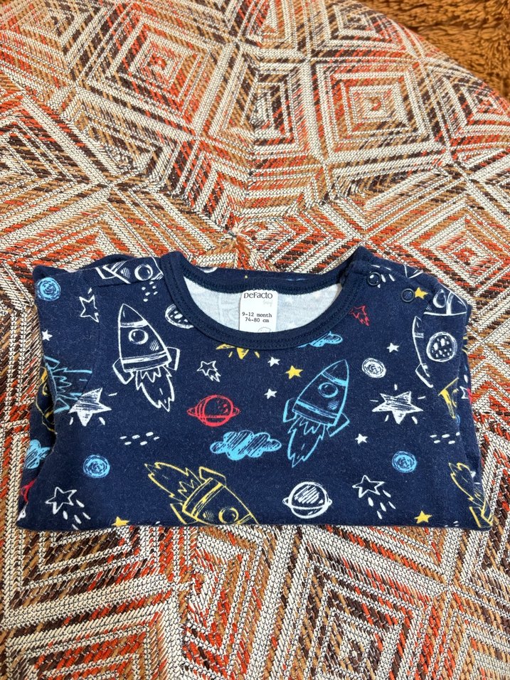 Erkek çocuk için renkli uzay temalı baskılı, uzun kollu, bisiklet yaka, dokuma yumuşak kumaştan, trend sokak stili uzun kollu zıbın