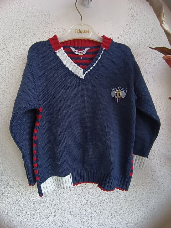 Çoklu alımda fiyatta yardımcı olurum Erkek çocuklar için V yakalı, uzun kollu, rahat kesim örgü kazak. Mavi renkli, kırmızı ve beyaz detaylarla sade tasarım, günlük sokak giyimine uygun. Uygulamadan kaynaklı ilan fotosu net ve geniş kapsamlı çıkmıyor malesef. İsteyene gardrops mesajlar bölümünden ürünlerin daha net fotoları yollanmaktadır. Fiyatları ürünlerin kalitesine ve uygulama geneline göre en diplerde tutuyorum Her katagoride çok çeşit ve ünlü markalar mevcut dolabımı incelemenizi tavsiye eder begenginiz ürünleri sepete ekleyerek tek Kargoda daha kârlı alım yapacağınızı hatırlatmak isterim. Diğer fotodaki ürünler ve daha fazlası Sürekli yeni ürünler eklenecektir #kazak#yelek#hırka#elbise #ayakkabı#oyuncak#kitap #kırtasiye#barbie#moster#monsterhıgh #okulmalzemeleri#terlik #sandalet#babet #toka#çanta#aksesuar#tshırt##toplusatış #toplukıyafet#ceket#kitap#sweatshirt#LCwaikiki#mont#kaban#çizme#ayakkabı#etek#elbise#şişmeyelek#şişmemont#trençkot#gömlek#tshırt#sweatshirt#sporayakkabı