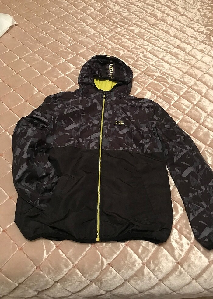 Temiz ve çok az kullanıldı.Sadece kapişonun üstünde hafif bir tülerme var kesilince tertemiz olur.İçi penye astarlıdır.Fermuarı, kol ağızları ve yaka tertemiz,sağlam.