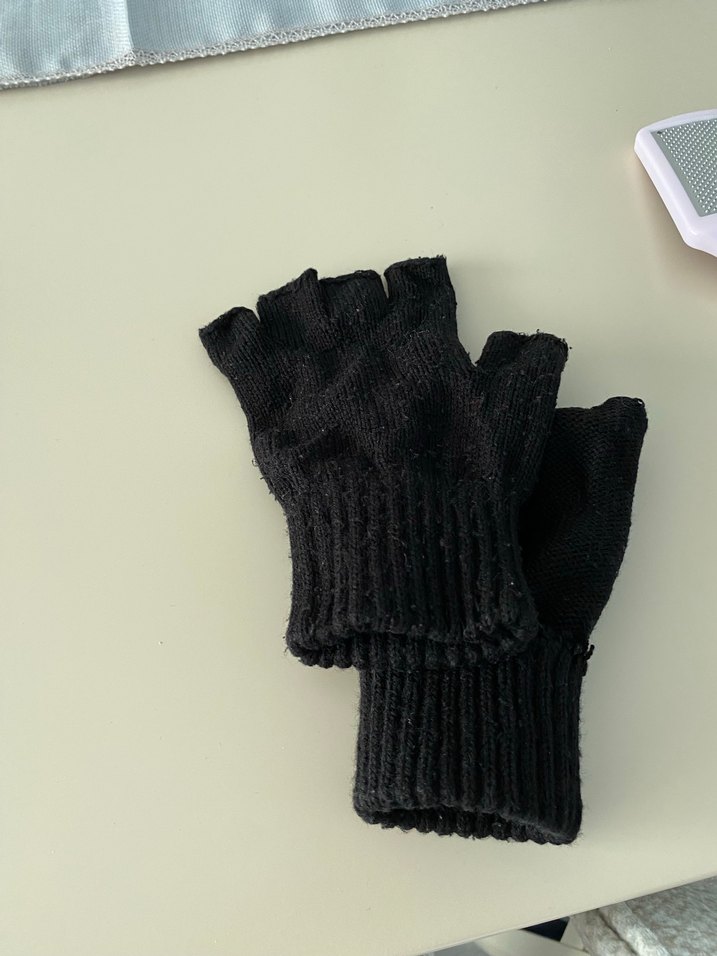 Erkek çocuklar için yün örme, yarım parmak siyah eldiven, sade goth tarzında.