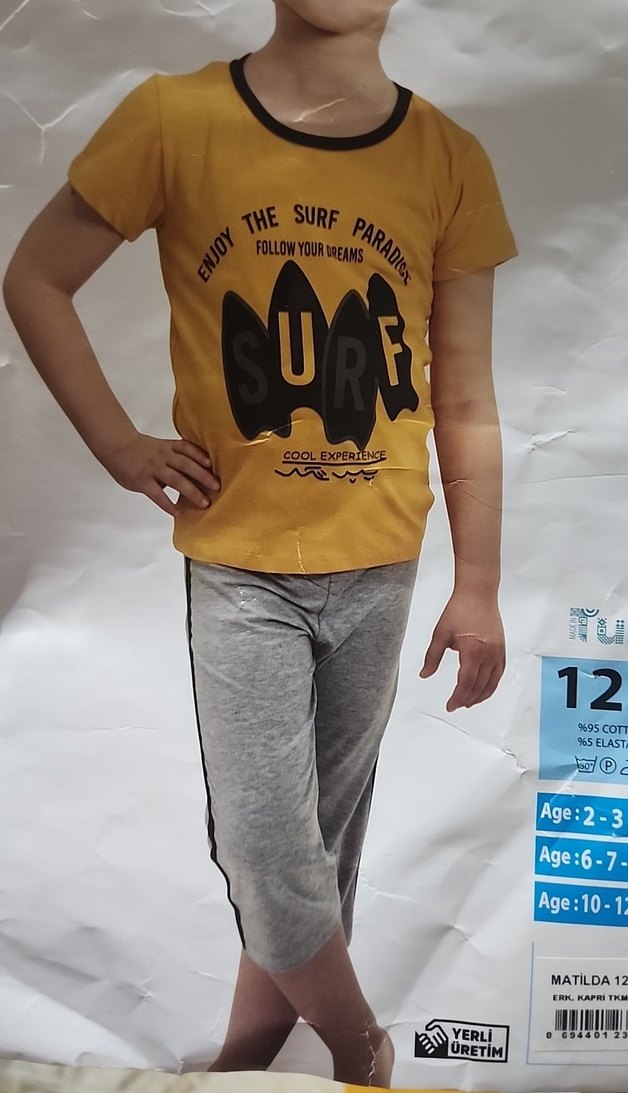Sarı renk kısa kollu, baskılı erkek çocuk tişörtü. Rahat kesimli ve sentetik kumaştan, sokak stili için uygun. Altına penyeden şortu da mevcut. Paketli gönderilecektir. 3 yaş için.