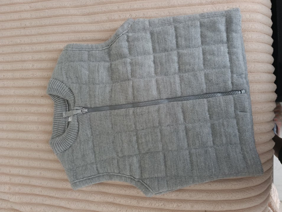 Gri renkte, fermuarlı ve boğazlı tasarıma sahip erkek çocuk yün yelek. Yumuşak kumaştan, rahat kesim ve sade, günlük kullanıma uygun uzunlukta.