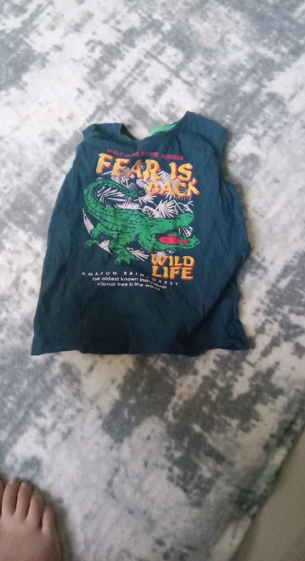 Yeşil renkli, baskılı ve kısa kollu erkek çocuk tişörtü. Bol kesim ve yuvarlak yaka, yumuşak ve sıcak kumaştan üretilmiştir. "FEARIS" baskılıdır.