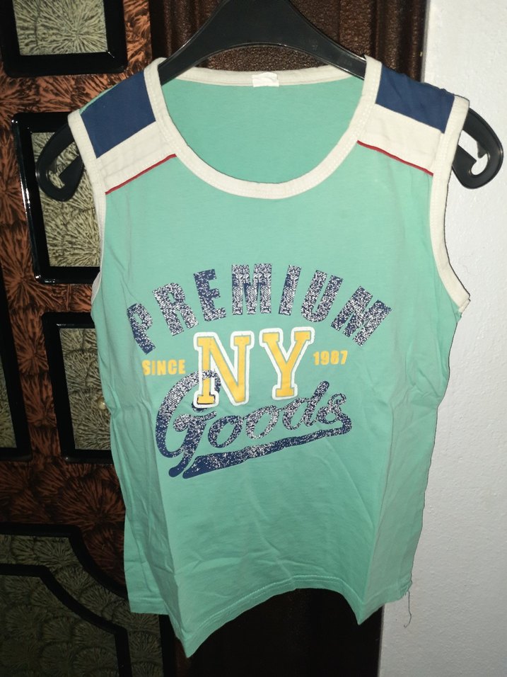 Pamuk kumaştan yapılmış, kolsuz ve fitted kesim erkek çocuk tişörtü. Pastel yeşil renkte, "NY," "1907," "SINCE" baskılı. Sokak stili için uygun. 10 11 yaş arası çocuklar için