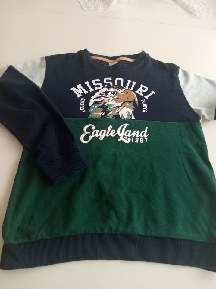 Erkek çocuk için yuvarlak yakalı, uzun kollu, bol kesim sweatshirt. Yumuşak, sıcak kumaştan yapılmış, baskılı kartal deseni ve fermuarlı detay içerir.