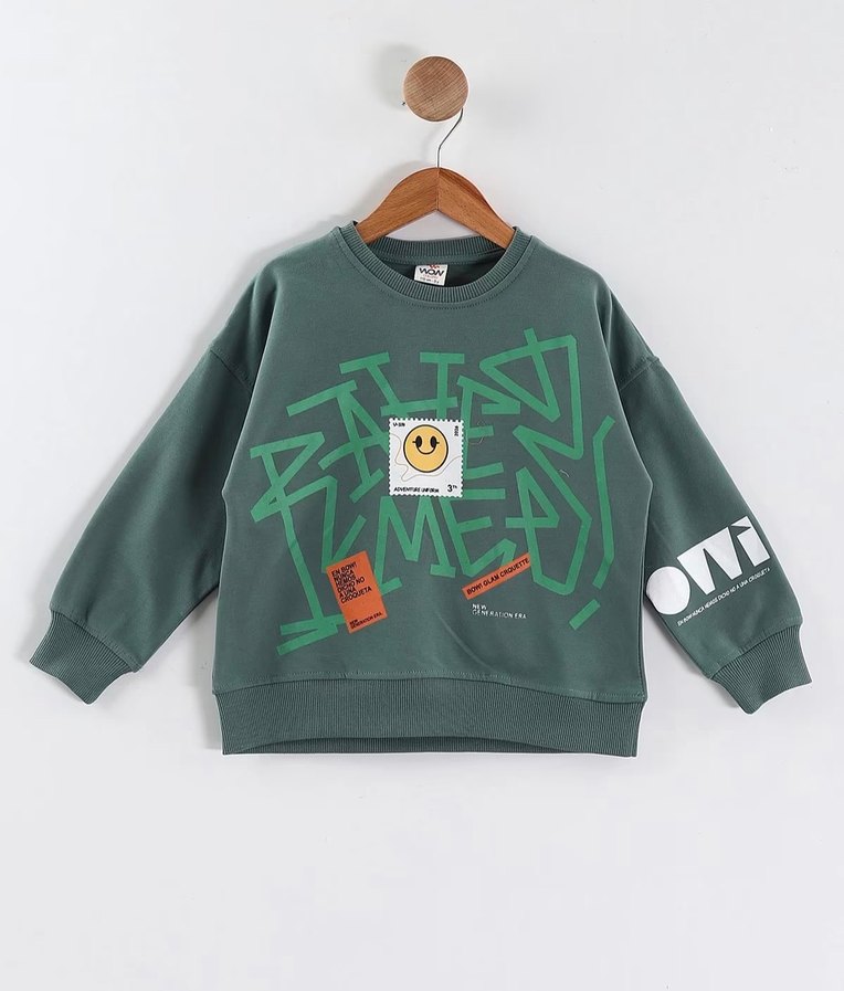 Erkek Çocuk Yeşil Baskılı Sweatshirt