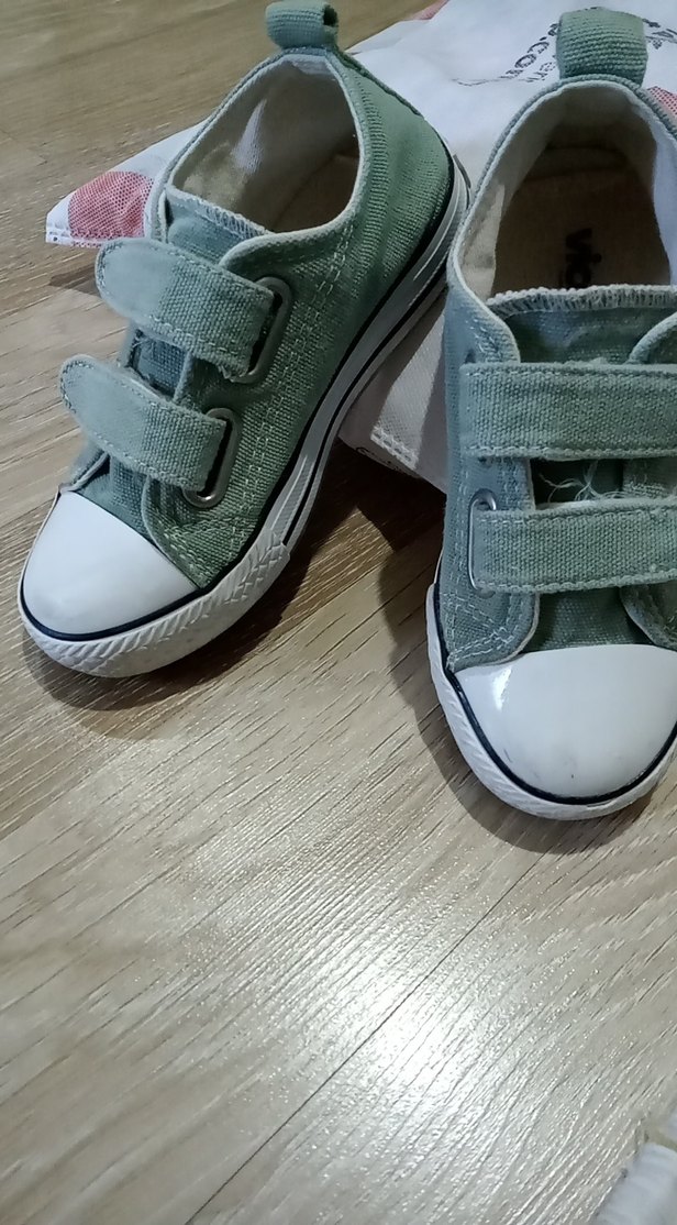 Yeşil renkli, cırt cırtlı ve kauçuk tabanlı erkek çocuk spor ayakkabısı. Sokak tarzına uygun sade tasarım ve rahat kullanım sunar.