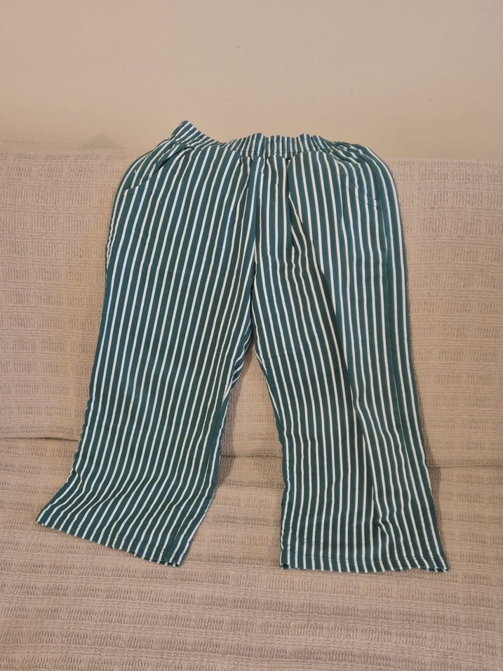 Erkek Çocuk Yeşil Çizgili Kumaş Pantolon