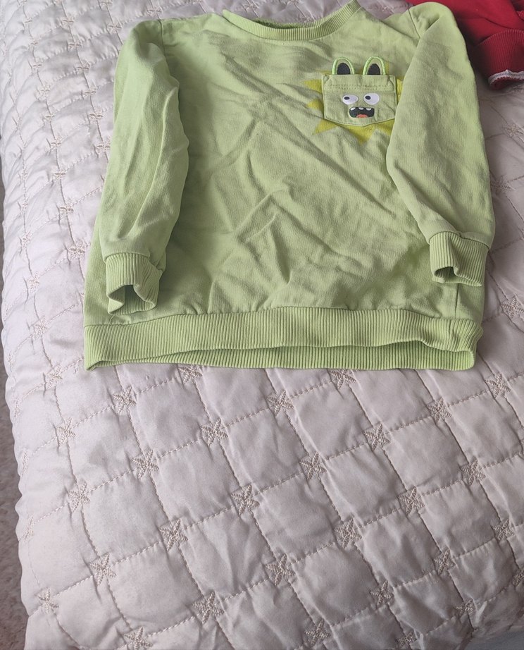 Erkek çocuklar için uzun kollu, yuvarlak yakalı, düğmeli ve yumuşak, sıcak kumaştan pastel yeşil renkli sweatshirt. Göğsünde sevimli hayvan yüzü detayı bulunur.