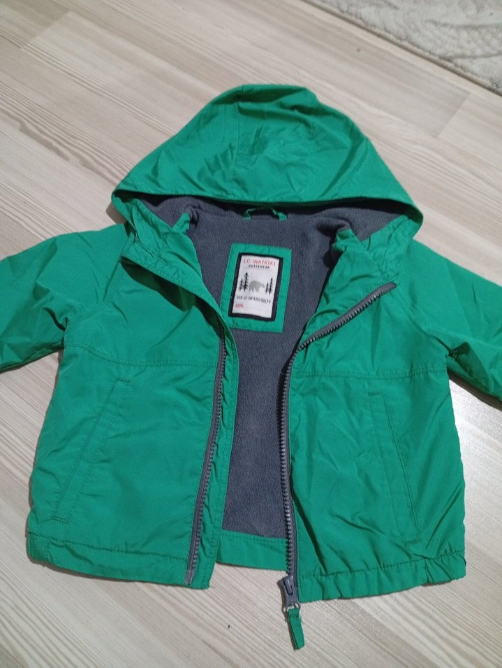 Erkek çocuk için yeşil, fermuarlı ve kapüşonlu, yumuşak ve sıcak kumaştan yapılmış, sade ve dar kesim ceket. Sokak stiline uygun.