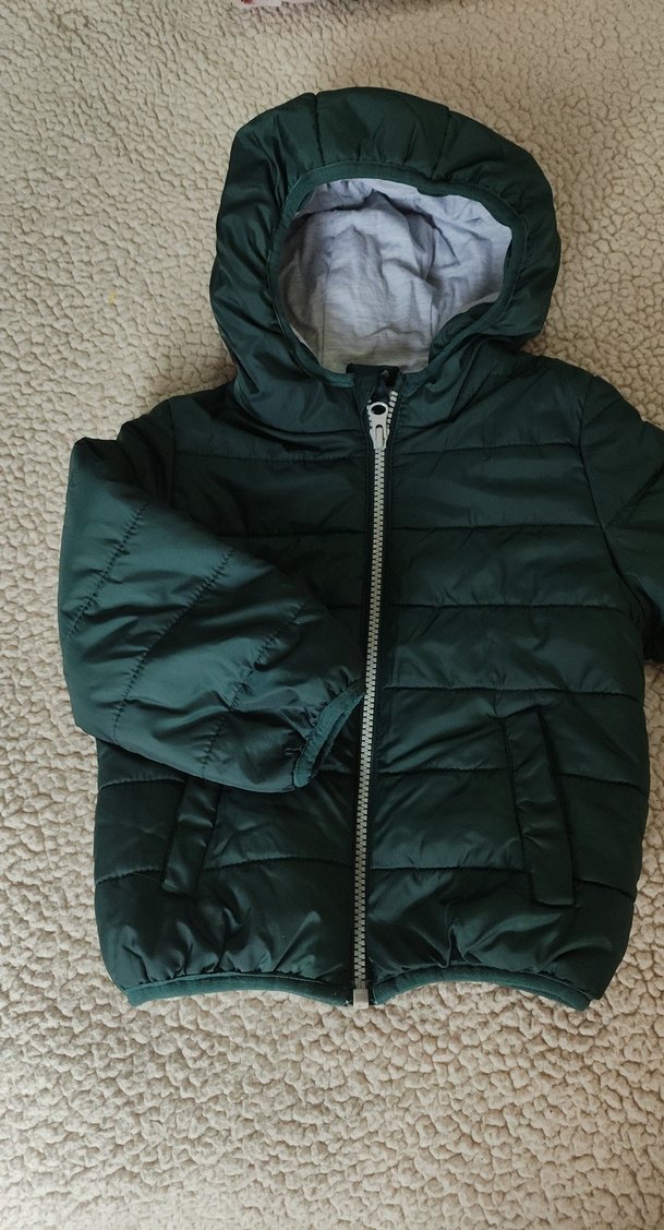 Erkek çocuk için fermuarlı, kapüşonlu ve fitted kesime sahip yeşil mont. İç kısmı yumuşak gri kumaşla kaplıdır.