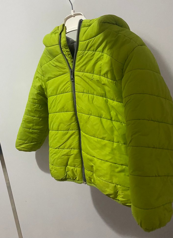 Erkek çocuklar için fermuarlı, yakası kesik ve fit kesim yeşil mont. Yumuşak ve sıcak kumaştan, sokak stiline uygun. Gorundugu gibidr