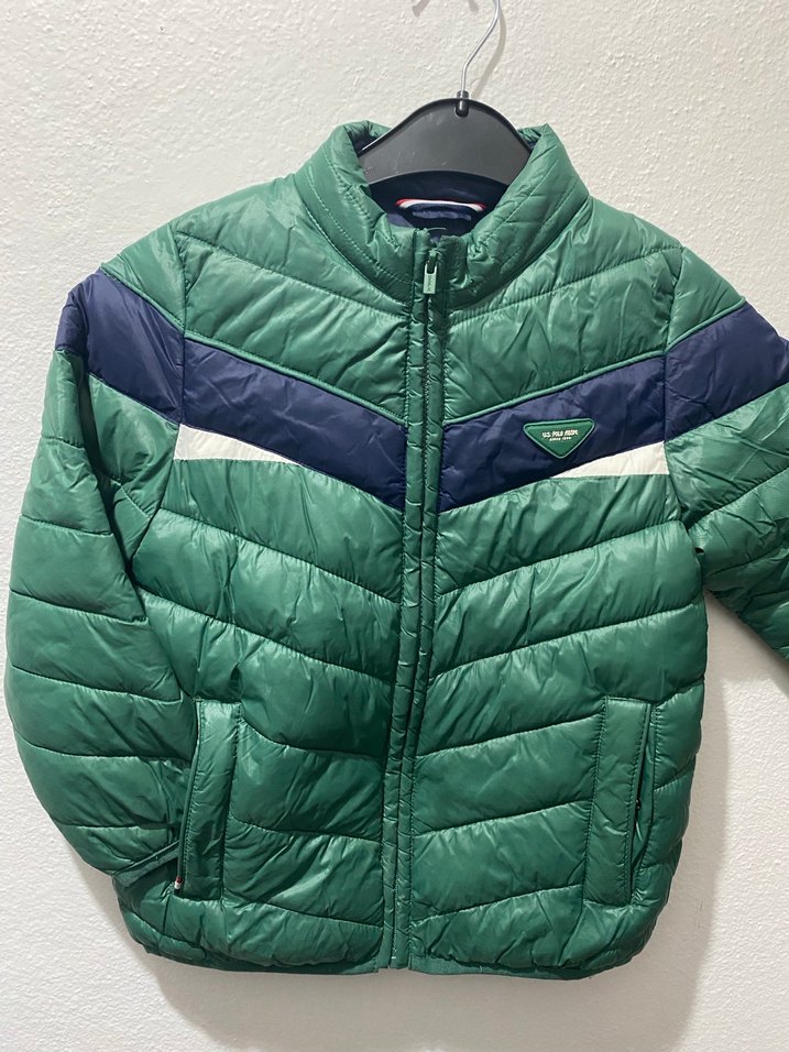 Erkek çocuklar için fermuarlı cepli, notlu yaka ve fitted kesim yeşil mont. Yumuşak ve sıcak dokusu, lacivert detaylı sokak tarzı sunar.