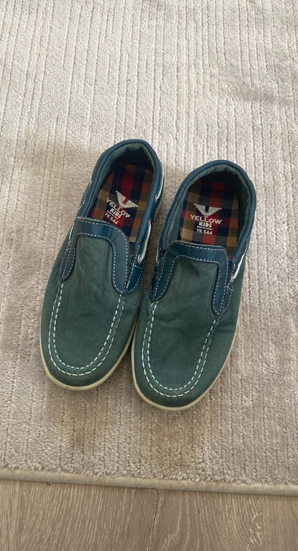 Erkek çocuklar için yeşil haki tonlarda, tokalı ve kauçuk tabanlı rahat loafer ayakkabılar. Sokak tarzına uygun. Hasarsızdır iade kabul etmiyorum