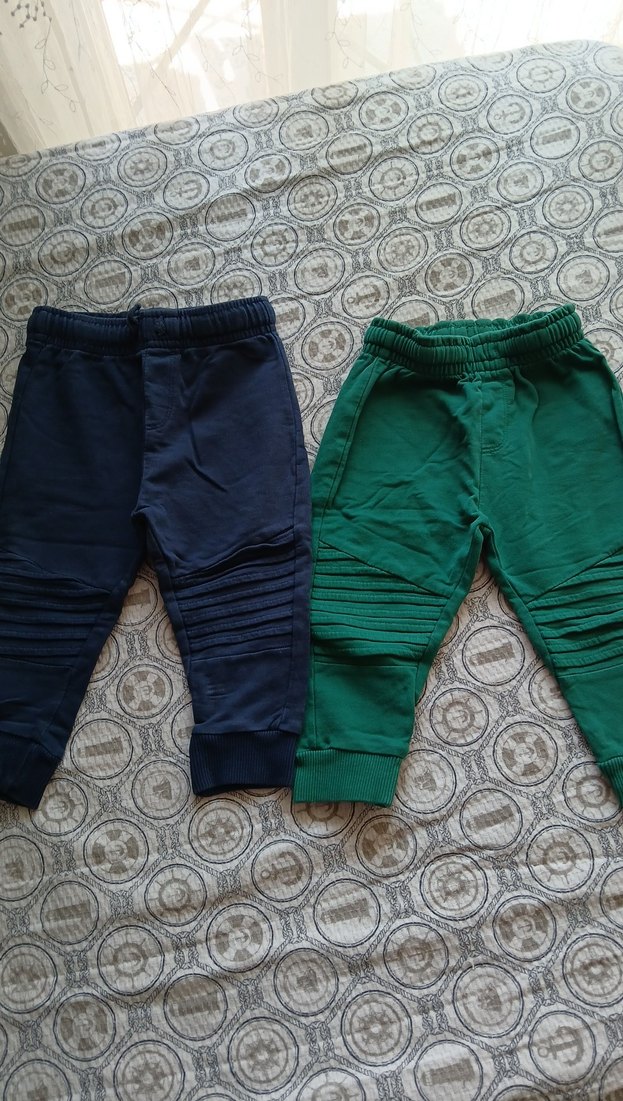 Erkek çocuklar için koyu yeşil pamuklu, bol kesim ve katlamalı detaylara sahip pantolon. Rahat ve sokak tarzına uygun.