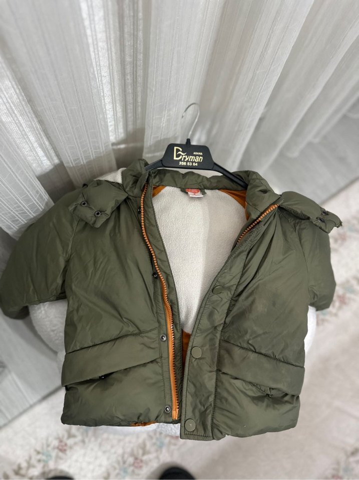 Erkek çocuklar için yeşil mont, yumuşak iç astar ve kürk detaylıdır. Notlu yaka ve streetwear tarzına sahiptir. Düz ve desensiz görünümüyle günlük kullanıma uygundur.