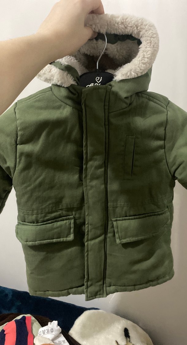 Erkek Çocuk Yeşil Kürklü Street Wear Mont