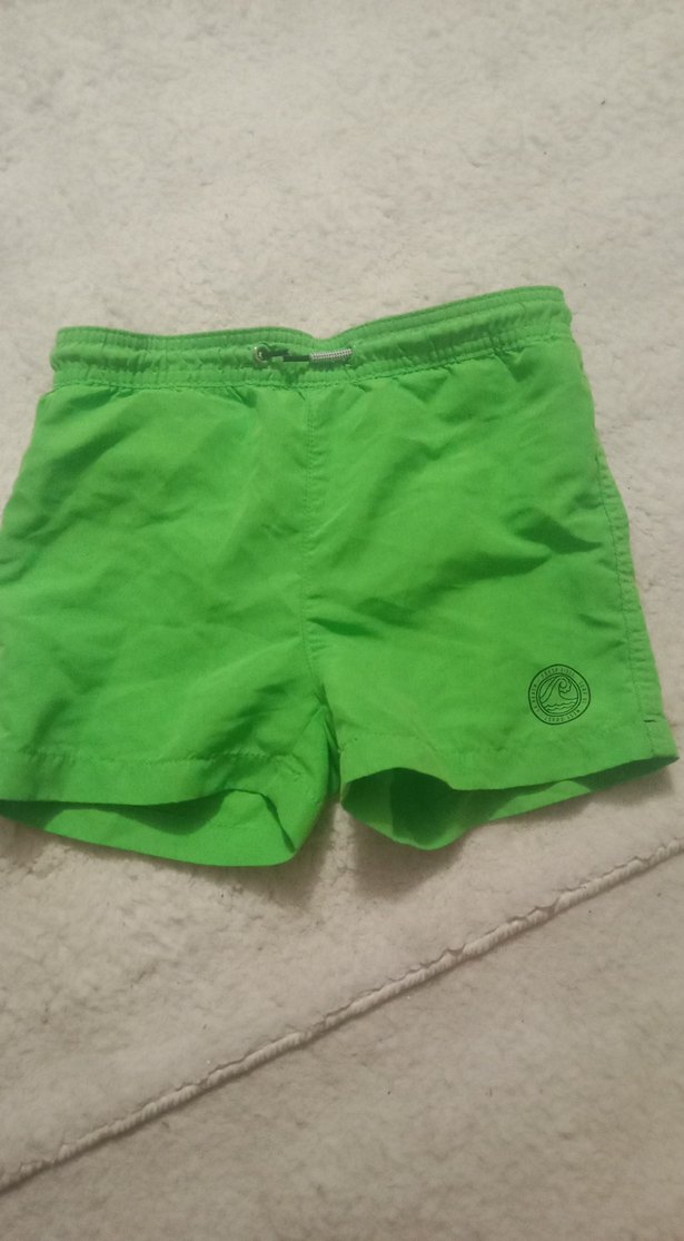 Canlı yeşil renkte, elastik bel bantlı ve küçük logo detaylı erkek çocuk mayo şortu. Rahat yüzme için tasarlanmıştır.