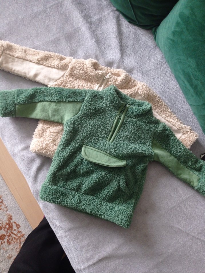 Erkek çocuk için uzun kollu, bisiklet yaka ve bol kesim yeşil gri peluş sweatshirt. Yumuşak pelus kumaştan üretilmiş, ön cepli.Yeni gibi inanın 0-6 ay uygundur