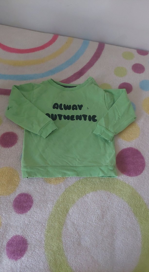 Erkek çocuk için yeşil, uzun kollu, bol kesim sweatshirt. Önünde 'ALWAY AUTHENTIC' yazısı bulunan renkli ve rahat bir sokak stili ürünü.