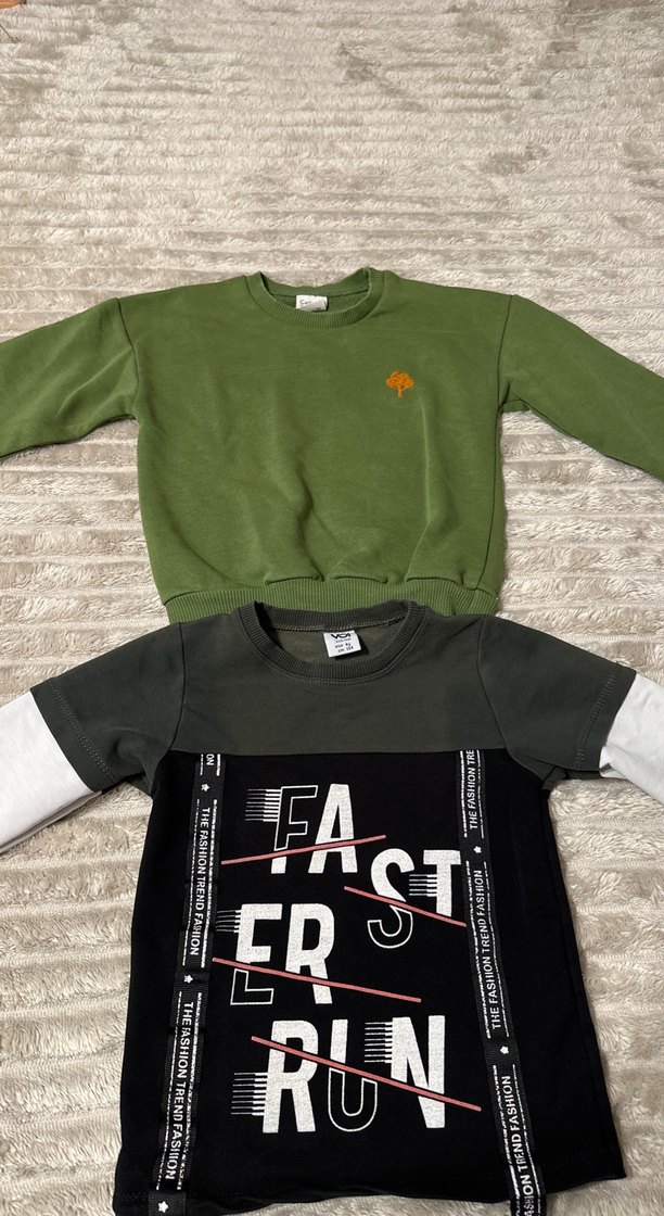 Erkek Çocuk Yeşil Sweatshirt Velcro Detaylı 2 Adet Sweatshirt.