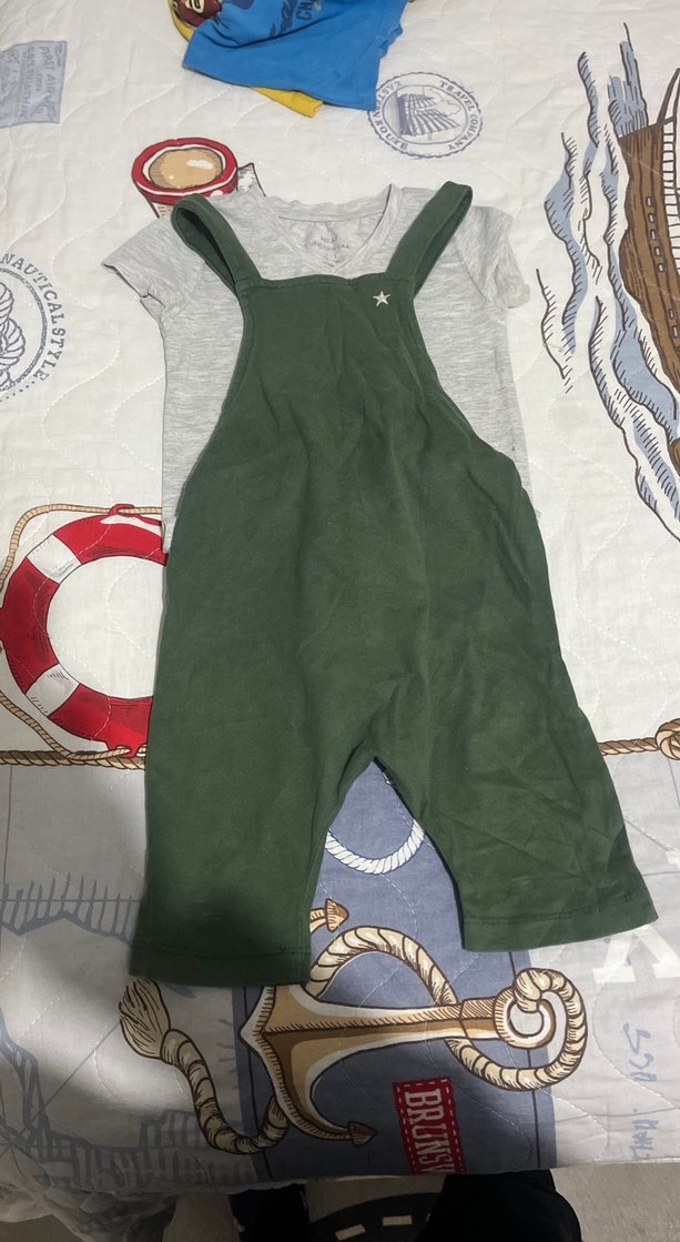 Yeşil renkli, kumaştan yapılmış, erkek çocuklar için dar kesim ve kolsuz tulum. Sokak tarzına uygun sade tasarım içerir.