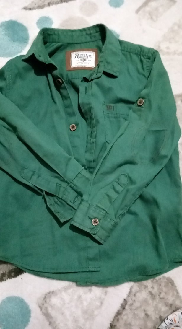 Erkek Çocuk Yeşil Uzun Kollu Pamuk Gömlek