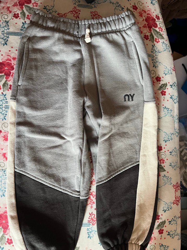 Kadınlar için pamuklu, bol kesim, eşofman altı. cepler ve gri, siyah, krem renk bloklu tasarım içerir. Rahat sokak stili için uygundur. 3 ay bile giymedik çabuk büyüyor erkek çocuk