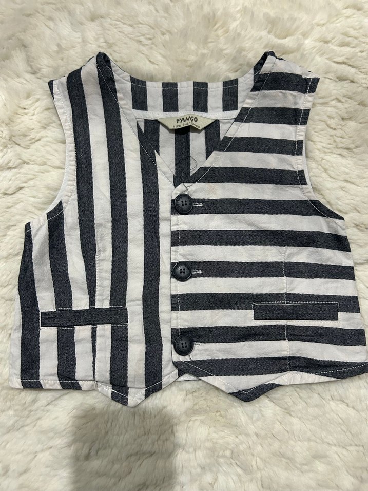 Gri ve beyaz zebra desenli, düğmeli, yakalı, kolsuz ve dar kesim denim çocuk yeleği. Çizgiler daha açık gri. 3 yaş diyor ancak benim oğluma suan olmuyor 98 cm 15 kilo 3.5 yaşında.