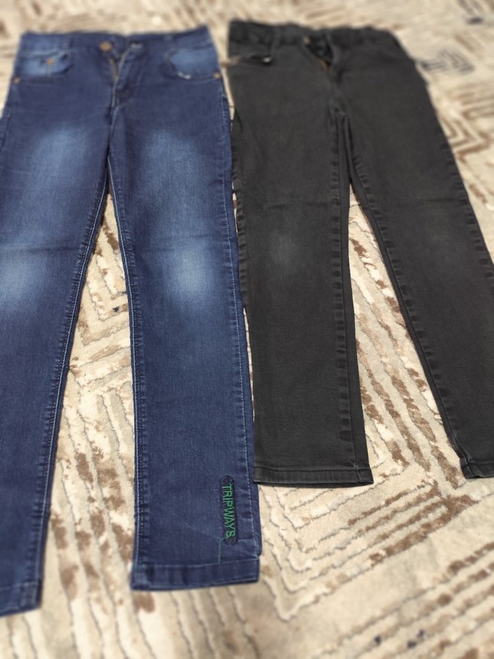 ekek cocukr için esnek bel bantlı, lacivert ve siyah renklerde, midi boyda, düz desenli kot pantolonlar. Günlük kullanıma uygun, dar kesim ve denim kumaş.ikili satışta sekiz ve 10 yas