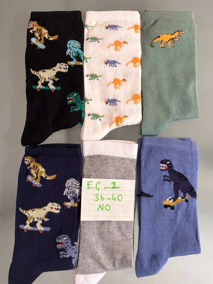 36-40 numara aralığında, sentetik kumaştan yapılmış, çok renkli ve dinozor desenli erkek çocukları çorap seti. Canlı koyu tonlar içerir.