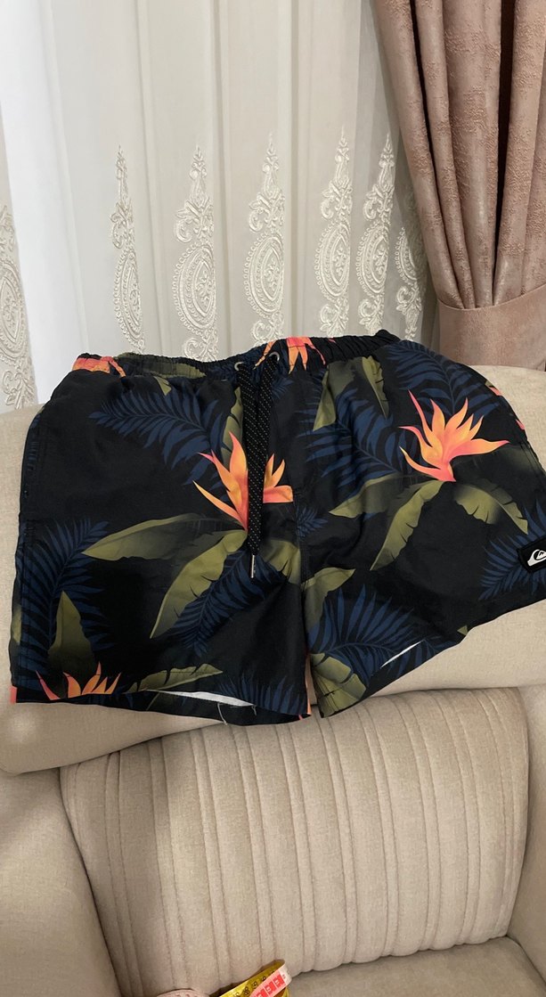 Erkekler için çok renkli, bağcıklı ve bol kesim mini mayo. Canlı batik desenli, plajda rahat kullanım için uygundur.