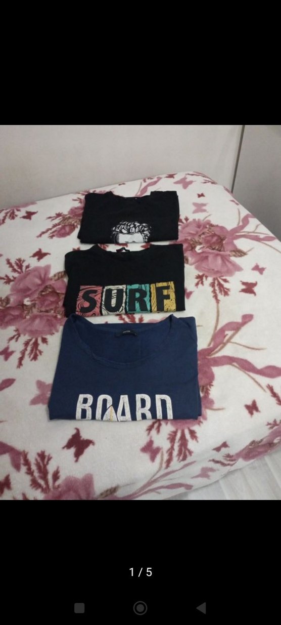 Pamuklu, kısa kollu, bol kesim erkek tişörtü. Çok renkli baskılı, koyu tonlarda, rahat sokak giyimi tarzında. Gögüs ölçüsü 53 cm boyu da 70. cm civarında 3 ünün fiyatı dir...