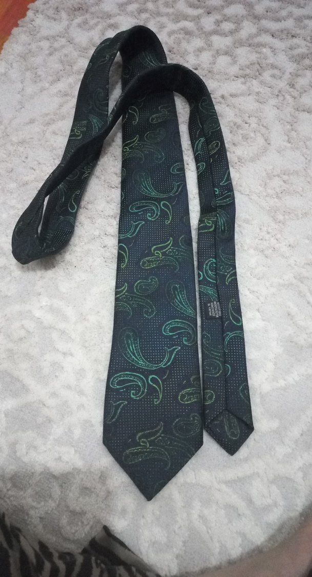 Erkek kravatı, koyu zemin üzerine çok renkli paisley desenleriyle iş ve sokak giyim tarzlarına uygundur. markası süvari. hiç kullanilmadi