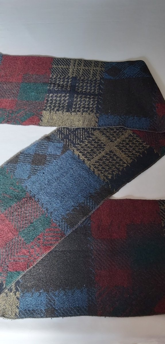 180x26cm.boyunda ekose yün Erkekler için uzun, koyu çok renkli desenli atkı. Yumuşak kumaşı sıcaklık ve rahatlık sağlar.
