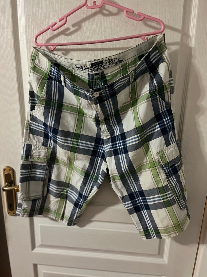 Pamuklu, bol kesim, çok renkli ekose desenli erkek kısa şort. Tokalı detaylara sahip, günlük rahat kullanıma uygun. XSİDE MERKA